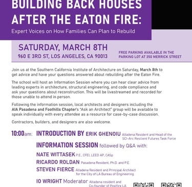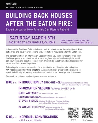 SCI-Arc hosted an information session where you heard clear advice from leading experts in architecture, structural engineering, and code compliance and could ask questions about reconstruction.